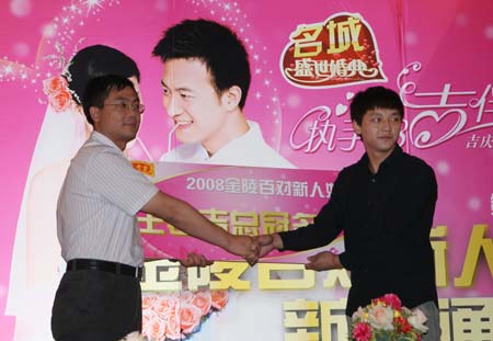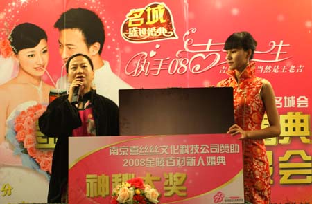 據(jù)承辦這次活動的負(fù)責(zé)人袁衛(wèi)國介紹,目前新人報名人數(shù)踴躍,已經(jīng)接近百對,其中,在這次四川地震中的兩對抗災(zāi)英雄也將參加本次集體婚禮;有眾多贊助商積極參與其中,他們還將邀請品牌企業(yè)老總和福布斯上榜人物在秦淮河畔、明城墻下,與所有新人共同見證百年愛情,由于婚典現(xiàn)場活動中,有祈福許愿、放飛風(fēng)箏、水景表演、煙火晚會等20多個浪漫經(jīng)典的環(huán)節(jié),會盡量邀請到海內(nèi)外知名人士親身參加其中,與新人進行零距離的接觸。