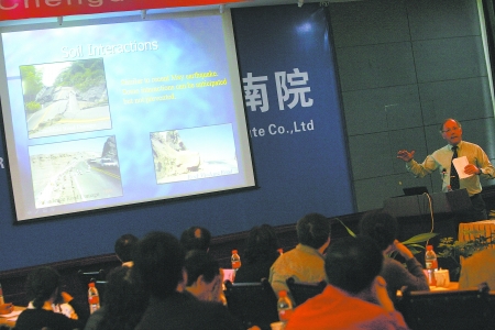昨日,由美國土木工程學會、中國巖石力學與工程學會共同主辦的“成都地震生命線座談會”在成都中鐵西南科學研究院順利召開,來自中美的權威地質專家,就地震預測、監(jiān)測,以及地震后通訊、交通、電力等生命線系統(tǒng)的修復、重建問題進行研討。中國礦業(yè)大學(北京)力學與建筑工程學院院長何滿潮現場演示了汶川地震物理模擬動態(tài)實驗,認為通過模擬實驗可以分析出地震前板塊運動曲線有一定不尋常的規(guī)律,相信之后通過地震預測、監(jiān)測系統(tǒng)的研制及完善,在相應的斷層安放監(jiān)測儀器,可以成功在地震前實施較為準確的預報。