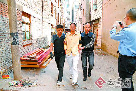 上午8點(diǎn)49分,昆明市公安局五華分局馬村派出所接到市局110指令,下馬村301號4樓,一男子劫持一女子欲將其殺害。民警迅速趕到現(xiàn)場,見男子反鎖大門,拒絕開門的同時(shí),情緒比較激動:“我就是要?dú)⒘诉@個(gè)賤人,你們不要管我!”他還嚷著如果民警進(jìn)屋,就要?dú)⑺缿阎信。民警通過出租房門頭的窗戶往里看,只見一名戴眼鏡的男子一手勒住一女子的脖子,另一只手拿著一把長20多厘米的菜刀架在女子脖子上。女子面色慘白,全身瑟瑟發(fā)抖,一臉恐懼。