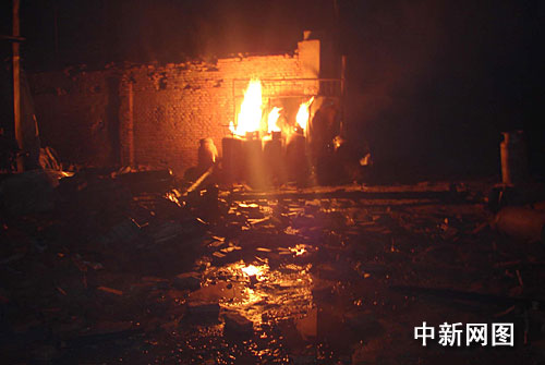 據(jù)一位現(xiàn)場(chǎng)救援的消防人員介紹,爆炸現(xiàn)場(chǎng)濃煙四起,一團(tuán)團(tuán)火苗從液化氣罐中噴出六七米高,發(fā)出“吱-吱”的聲響,廠區(qū)內(nèi)不時(shí)發(fā)生爆炸,鋼結(jié)構(gòu)車(chē)間受損嚴(yán)重,頂部及東北角墻體被爆開(kāi),據(jù)現(xiàn)場(chǎng)了解,里面已有10多枚液化氣罐發(fā)生了爆炸。而廠區(qū)東側(cè)為居民住房,距車(chē)間約5米,廠區(qū)西側(cè)為阿克蘇王三油漆化工廠,南側(cè)為空地,堆放成品發(fā)泡網(wǎng),北側(cè)為該單位庫(kù)房,堆放大量成品發(fā)泡網(wǎng),油漆車(chē)間與發(fā)泡網(wǎng)廠車(chē)間相連,里面放著價(jià)值約30余萬(wàn)元的涂料和設(shè)備,火勢(shì)力借著風(fēng)力逐漸向四周蔓延,如不及時(shí)撲救,很可能發(fā)生火燒連營(yíng)的危險(xiǎn),造成更大的經(jīng)濟(jì)損失。