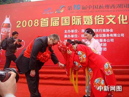 中新網(wǎng)杭州10月25日電(柴燕菲 方心怡)今天的西子湖彌漫著濃濃的幸福味道。在今天開幕的二00八首屆國際婚俗文化節(jié)上,來自印度、巴基斯坦等國的十余對異國新人在愛情之都杭州喜結(jié)良緣。