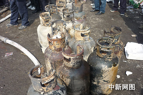 官兵們?cè)诨饒?chǎng)中搶出的煤氣瓶