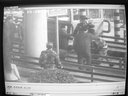 昨日上午10時(shí)許,記者在子午收費(fèi)站監(jiān)控室看到了事發(fā)時(shí)的錄像資料。監(jiān)控錄像在不同角度清晰地記錄了一男子拒絕繳費(fèi),并毆打收費(fèi)人員和民警的經(jīng)過。據(jù)錄像資料顯示: