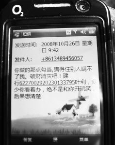 “就你做的那點(diǎn)勾當(dāng),瞞得住別人瞞不住我。破財(cái)消災(zāi)吧。錢多少你看著辦,絕不是和你開玩笑,后果你想清楚!賬號(hào)******葉利!笔盏竭@樣的短信,你會(huì)中騙子的圈套嗎?26日,市民張先生就收到這樣一條敲詐短信。