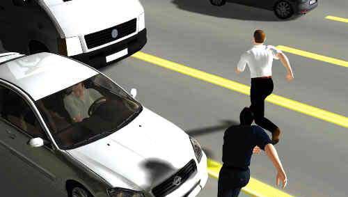 據(jù)轎車(chē)司機(jī)馮先生稱(chēng),當(dāng)時(shí)他正行駛在靠中間綠化帶的小客車(chē)車(chē)道上。“當(dāng)時(shí)車(chē)輛很多,我開(kāi)得并不快。突然,車(chē)輛左前方跑過(guò)一名拿著警棍的男子,我緊急剎車(chē)還是把他撞倒了,隨后一旁車(chē)道的一輛中型貨車(chē)剎車(chē)不及把他壓在車(chē)輪下!薄翱此袷窃谧汾s什么人,而且跑得很快,甩出來(lái)的警棍把我的車(chē)前窗擋風(fēng)玻璃都撞裂了!瘪T先生說(shuō)。