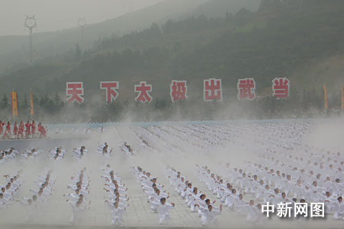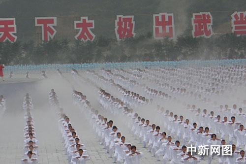 作為第三屆世界傳統(tǒng)武術(shù)節(jié)重要活動之一,“走進(jìn)武當(dāng)”系列活動30日起拉開帷幕。近5000名中外嘉賓齊聚武當(dāng)山,親身感受武當(dāng)文化及武當(dāng)武術(shù)的博大精深。武當(dāng)山廣場上的威風(fēng)鑼鼓鏗鏘有力,《云依武當(dāng)》、《中國功夫》、《天下太極》等三個篇章依次演繹,近萬名武當(dāng)武術(shù)愛好者向中外嘉賓演繹了玄妙飄靈的武當(dāng)功夫。除觀看太極拳表演外,各國嘉賓還趕赴武當(dāng)山紫霄宮觀看法事表演,并在南巖宮烏鴉嶺等景點(diǎn)觀光。