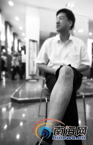 李先生腿上的傷清晰可見(jiàn)