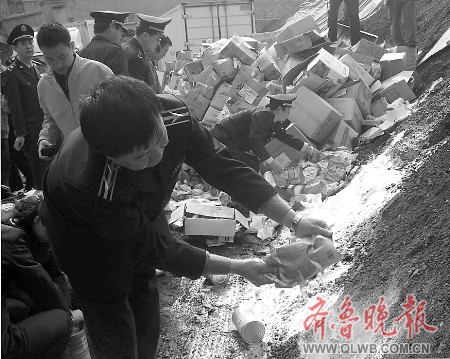 據(jù)介紹,截至10月30日,青島市工商系統(tǒng)共在青島各縣市區(qū)查扣不合格奶粉2160.26公斤,液態(tài)奶236.515公斤,企業(yè)自行下架、召回不合格奶制品5834.475公斤。此次銷毀工作是青島市針對不合格奶制品的第一次集中銷毀,以后會根據(jù)查獲不合格奶粉的總量繼續(xù)采取合適的方式進行銷毀。