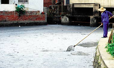 昨晚7時許,兩車不合格液態(tài)奶在廣州石井潭村垃圾壓縮站銷毀,壓縮后的液奶包裝袋被運往垃圾填埋場,但壓縮出來的液態(tài)奶卻被直接排入垃圾站旁的河涌。附近街坊反映,這樣的銷毀工作前晚已有一次,白天溫度升高,牛奶發(fā)酵,河涌內(nèi)散發(fā)出的臭氣讓人難受。