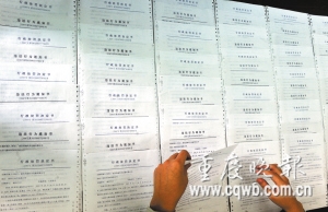 高速公路執(zhí)法隊員整理“渝B27123”貨車超載處罰通知書的存根