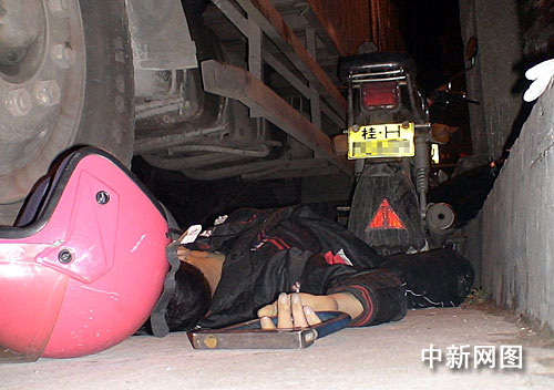 被大貨車(chē)擋住無(wú)路可逃的犯罪嫌疑人襲警時(shí)被槍擊中倒地身亡。溫?fù)P勤 攝