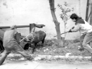 眾人提議點(diǎn)火燒草,用大火、濃煙把野豬逼出來(lái)。雜草雖燒了一大片,但蘆葦叢下是一片水塘,野豬在這片沼澤里躲藏著,燒不著也熏不到!坝帽夼谡ā保腥舜蠛,職工們遂買來(lái)一大包鞭炮,將鞭炮點(diǎn)燃丟進(jìn)蘆葦叢中,在“噼噼啪啪”的鞭炮攻擊下,野豬異常不安地在蘆葦叢中拱來(lái)拱去,最后終于沖了出來(lái)。