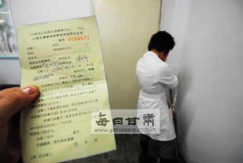 當(dāng)天下午4時(shí)30分,記者聞?dòng)崄淼匠顷P(guān)交警大隊(duì)教導(dǎo)員辦公室,一名戴著眼鏡的白衣女子正低頭坐在辦公室沙發(fā)上,見到記者,女子立刻用雙手捂住面龐。教導(dǎo)員王永剛向記者講述了事件的經(jīng)過。當(dāng)天下午4時(shí)許,這名姓趙的中年女子推開教導(dǎo)員辦公室大門,開口便稱是“新華社甘肅分社”的記者,她從包中拿出一摞罰單,上面記錄著車號(hào)為甘A55893和甘A09531兩車自2005年到2008年3年中的30余次違規(guī)記錄,罰單加上滯納金金額已逾3萬元。隨后,該女子大言不慚地說:“新華社在宣傳報(bào)道方面一直與城關(guān)交警大隊(duì)配合得不錯(cuò),希望給個(gè)面子把罰單消了!”