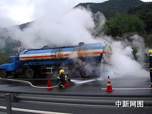 接到報(bào)警后,高速交警寧波支隊(duì)迅速啟動(dòng)應(yīng)急預(yù)案,組織警力以及溪口消防中隊(duì)、奉化市環(huán)保部門、施救單位等相關(guān)部門在第一時(shí)間迅速趕往現(xiàn)場(chǎng)進(jìn)行處置。為了確保安全,高速交警到達(dá)現(xiàn)場(chǎng)后對(duì)事故現(xiàn)場(chǎng)進(jìn)行了交通管制,同時(shí)在甬金高速公路往金華方向溪口出口對(duì)過(guò)往車輛進(jìn)行分流。消防車到達(dá)現(xiàn)場(chǎng)后迅速展開施救,用車上的水和泡沫迅速對(duì)泄漏的濃硫酸進(jìn)行稀釋,防止繼續(xù)擴(kuò)散,同時(shí)組織相關(guān)人員對(duì)車上剩余的濃硫酸進(jìn)行撥貨處理。經(jīng)過(guò)半小時(shí)左右的努力,泄漏的濃硫酸得到了控制,一個(gè)小時(shí)左右之后路面恢復(fù)了正常通行。