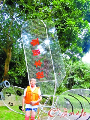 “就是為了實(shí)現(xiàn)兒時(shí)的一個(gè)夢(mèng)!迸砝蠋熣f(shuō),他年輕時(shí)就讀重慶一中,當(dāng)時(shí)參加了學(xué)校的跳傘隊(duì),曾想做個(gè)飛行師什么的,沒(méi)想到畢業(yè)后卻成了一名電子工程師,飛天的理想也被束之高閣,但在夢(mèng)里卻經(jīng)常夢(mèng)到自己駕著飛機(jī)飛上藍(lán)天。彭老師說(shuō),他最大的夢(mèng)想就是用人力飛越瓊州海峽。