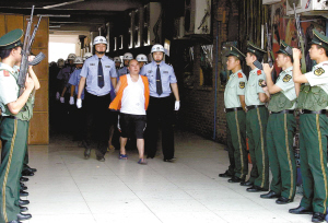 陳明涉黑成員被押往公判現(xiàn)場(chǎng)(資料圖片 來(lái)源:重慶晚報(bào))