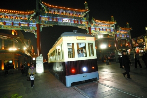 昨晚,“鐺鐺”聲音再次在前門大街響起,初降的夜幕中鐺鐺車緩緩駛出。這是司機(jī)考取“駕照”后首次試運(yùn)行。