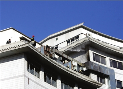 昨天上午9點(diǎn)40分,大廈院外仍停著數(shù)輛警車和消防車,保安阻止無(wú)關(guān)人員進(jìn)入院內(nèi),百余人站在中天石酒店大堂和院子內(nèi),酒店大堂還有較重焦煳味。大廈一層中部一間屋子外墻被熏黑,現(xiàn)場(chǎng)已無(wú)明火。院內(nèi)垃圾站一員工稱,西客站郵件處理中心一層廚房著火,火苗竄出屋外并燒至煙道。