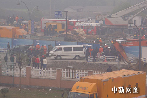 中新網(wǎng)杭州11月16日電(記者 龔讀法 實習(xí)生 王磊 姜越潮)2008年11月16日上午9時15分,浙江省杭州市蕭山區(qū)地鐵坍塌現(xiàn)場,駛進一量殯葬專用車,救援工作有序展開。16日上午11時將召開最新救援工作新聞發(fā)布會,通報最新救援情況,并將在16日下午公布下一步救援方案。