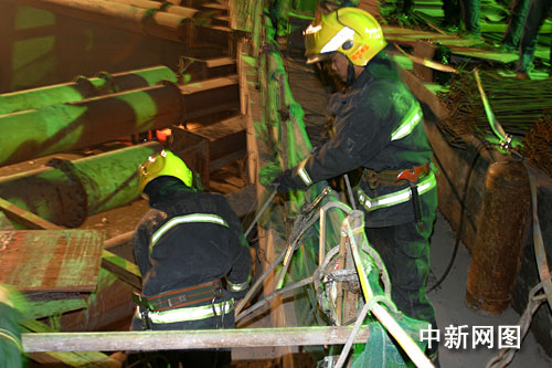 杭州市公安消防局迅速在現(xiàn)場(chǎng)成立指揮部,出動(dòng) 200余名消防官兵、25輛消防車(chē)及移動(dòng)指揮車(chē)、應(yīng)急照明車(chē),組織官兵通宵達(dá)旦開(kāi)展救援工作。15點(diǎn)34分,首批消防救援力量蕭山中隊(duì)、市北中隊(duì)6輛消防車(chē)已到達(dá)現(xiàn)場(chǎng)。官兵立即分兩組對(duì)現(xiàn)場(chǎng)進(jìn)行搜索,對(duì)坍塌區(qū)域內(nèi)車(chē)輛進(jìn)行逐一搜查。另一組在施工坍塌區(qū)進(jìn)行現(xiàn)場(chǎng)搜救被埋壓,并成功救出多人。由于工地結(jié)構(gòu)性坍塌造成自來(lái)水鋼管斷裂,大量水涌出淹沒(méi)事故現(xiàn)場(chǎng)。鑒于當(dāng)時(shí)水位較高且部分車(chē)輛已被完全淹沒(méi)的狀況,消防部門(mén)立即安排特勤一中隊(duì)2名蛙人攜帶水下照明燈具深入水下,對(duì)被困人員情況進(jìn)行再次搜尋,并對(duì)倒塌區(qū)域水深度進(jìn)行實(shí)地測(cè)量。同時(shí)先后調(diào)集20臺(tái)手抬泵,在坍塌區(qū)域周邊搭建抽水平臺(tái)進(jìn)行作業(yè);另調(diào)集15臺(tái)潛水泵、6臺(tái)泥漿泵實(shí)施高密度不間斷抽水作業(yè)。