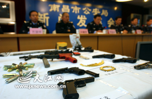 11月17日,南昌市公安局舉行新聞發(fā)布會,通報破獲的販賣毒品、槍支案