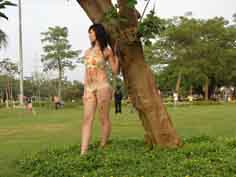 倪先生說,顧客辦完卡后,該攝影中心便將女模特出租給顧客,這些模特可以以裸體或者人體彩繪等形式擺出各種造型來供拍攝者拍攝。“前些天,攝影中心為了宣傳,就邀請來了一位女模特在萬綠園脫光了衣服,現(xiàn)場擺出各種姿勢供人拍照,而我們就現(xiàn)場發(fā)傳單、拉客戶! 倪先生認(rèn)為這是一種淫穢行為,所以就提出了辭職。然而,工作了10多天,他應(yīng)得的工錢,攝影中心卻不肯給他,所以他只好向媒體舉報。倪先生還向記者提供了一張該攝影中心的廣告宣傳單,上面印上了很多的裸體少女,神情各異。
