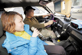 國慶長假過后,范曉明就開著他精心改裝的卡拉OK出租車上路了,沒想到,他和他的車竟然成了“明星”。“天雷他們做節(jié)目時(shí),經(jīng)常進(jìn)行互動(dòng),看見我的車后第一個(gè)打進(jìn)直播電話的司機(jī)或乘客,都可以領(lǐng)取一份獎(jiǎng)品!狈稌悦餍χf,“很多時(shí)候,我一上路,就有別的車跟著我,也算是過了把‘明星’癮!