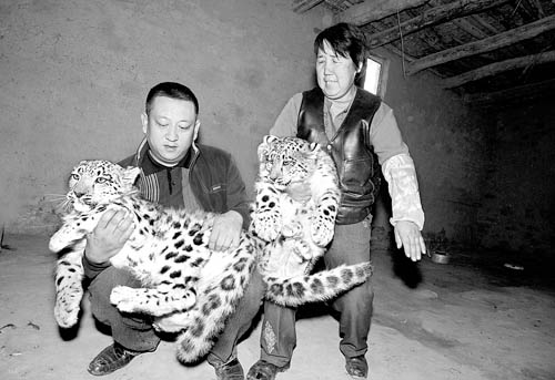 馬鳴說,根據(jù)種種跡象可以作出這樣一個判斷,張培偉或者其團伙出于私利,在上山獵殺了母雪豹后將其幼崽劫持下山。當然還有可能是另外一種版本,就是另外一個盜獵分子將母豹獵殺后將一對小雪豹帶下山,這時巧遇放羊的張培偉,盜獵分子做賊心虛,一慌,將小雪豹棄之草叢逃之夭夭,而與盜賊擦肩而過的心地善良的張培偉將可憐的小雪豹帶回寒舍精心喂養(yǎng)。如果想象得再浪漫一點,就像張培偉描述的那樣,雨后的一個清晨,他從簡易帳篷里走出來牧羊,走了1公里左右,突然被草叢里一團晃動的黑影吸引。走近一看,原來是一對山貓。不過張培偉可能忘記了一個細節(jié),一只或者一對覓食不成空腹而歸的成年雪豹因為養(yǎng)不活孩子,打掉牙齒流著眼淚看著離它們不遠處的一個好心人將自己的一對孩子收養(yǎng)。