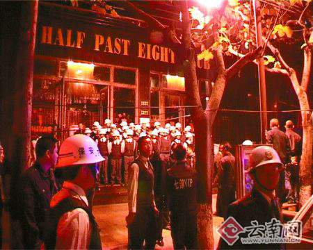 昨天凌晨,一伙不明身份的男子在昆明市寶善街“八點半”酒吧門口聚集許久后,和從酒吧內(nèi)沖出的另一伙人發(fā)生沖突,現(xiàn)場一度十分混亂。昆明市公安局緊急出動百余警力,短時間內(nèi)平息了此次群毆,同時帶回15人進(jìn)行調(diào)查。