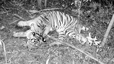 9月8日上午,黑龍江省東方紅林業(yè)局居民到東林林場撿山核桃,在位于林場1林班的地方發(fā)現(xiàn)一具東北虎尸體。接到報(bào)案,林區(qū)公安局立即趕赴現(xiàn)場。經(jīng)勘查發(fā)現(xiàn),被害的老虎是一只野生成年雌虎,身長1.55米,加上尾部長2.38米,肩高0.54米,體重97公斤。在它前進(jìn)的方向只發(fā)現(xiàn)了野豬的足跡,說明它在死前仍然在追野豬。地上的虎毛和虎爪的痕跡清晰可見,顯然它在死前經(jīng)過一陣掙扎。從勒在虎頸部的鋼絲套可以斷定,這個鋼絲套就是導(dǎo)致其死亡的直接原因。經(jīng)鑒定,死去的老虎屬東北虎亞種,系鋼絲套勒頸部窒息死亡。
