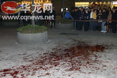 今晚(25日晚)9:10分左右,重慶市江北區(qū)北城天街(肯德基、遠東百貨中間的廣場)發(fā)生一起慘案:一女子被一持刀男子,連砍數(shù)刀倒在血泊中,之后該男子舉刀自殘。