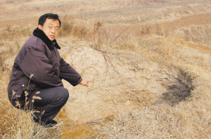 “這就是被盜過的王吉漢代古墓群!弊蛱焐衔,記者來到位于即墨東部的西皋虞村西北看到,一個寫有王吉墓群和青島文物保護單位字樣的大石碑周圍,有10個很大的土堆。一名當?shù)卮迕窀嬖V記者,去年9月,這里發(fā)生了一起盜墓案,聽說盜墓者挖出了一件“金縷玉衣”,但不敢確認真假,許多村民在古墓附近種田時還曾撿到過玉片和漢代的五珠幣。