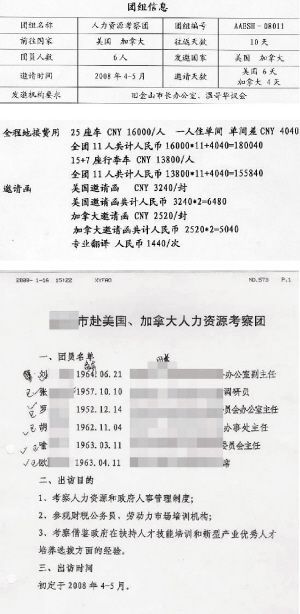 這次因公出國標榜的是人力資源考察團,目的也很遠大堂皇:參觀人力資源和政府人事管理制度;參觀財稅公務(wù)員、勞動力市場培訓(xùn)機構(gòu);考察借鑒政府在扶持人才技能培訓(xùn)和新型優(yōu)秀人才培養(yǎng)選拔方面的經(jīng)驗。但在帖中的“考察行程安排”卻看不到任何考察、培訓(xùn)的安排,這些團員所要去的地方,全是著名的旅游景點。由這些資料可以看出,本意是讓官員開闊眼界,轉(zhuǎn)變思維,學習先進經(jīng)驗的公費出國考察,有些已經(jīng)變異成為公款旅游、購物的途徑。
