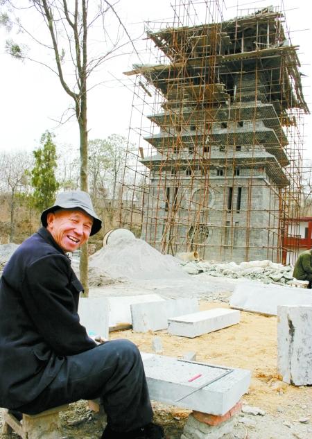 “今年年底,投資200多萬元的鐘鼓樓即將竣工。目前,洞林寺的恢復(fù)重建資金已有近千萬元。你看大雄寶殿上的那個(gè)頂?shù)脑煨褪遣皇莿e具一格,這是由方丈釋永信設(shè)計(jì)的……”解說中,洞林寺法師釋延爍一臉幸福。