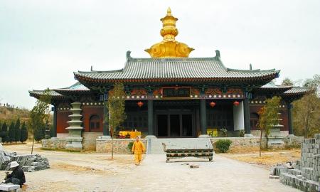 同是少林寺下院的滎陽市賈峪鎮(zhèn)洞林寺目前也正在緊張施工中。記者在現(xiàn)場看到,方鼎式的山門上方已經(jīng)鐫刻上了釋永信手書的“洞林大覺禪寺”六個(gè)鎏金大字。軸線北方100米仿印度風(fēng)格的大雄寶殿也已投入使用。