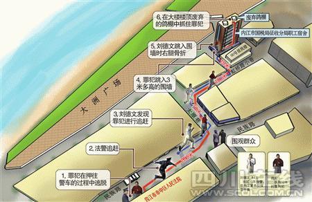 此時(shí),劉德文才發(fā)現(xiàn)自己孤身一人,追逃民警尚未到達(dá)!皼Q不能讓他跑了!”未及多想,他一頭鉆進(jìn)小巷,逃犯的身影再次出現(xiàn)在視線內(nèi)。“站住,你跑不掉的!”就在劉德文快速靠近時(shí),慌不擇路的逃犯突然放棄小巷,縱身跳下一旁3米多高的圍墻,進(jìn)入全封閉的內(nèi)江市國稅局征收分局職工宿舍大院。