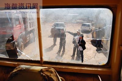 當(dāng)日上午,事發(fā)工地已經(jīng)暫停施工。4輛施工車都遭到不同程度的破壞,有的駕駛室玻璃被砸,有的輪胎被刀砍。一片已經(jīng)做好的路基模板,也遭到破壞。