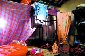 昨日下午1時(shí)許,記者來(lái)到小海的家鄉(xiāng)汕頭市潮陽(yáng)區(qū)和平鎮(zhèn)下寨村。村中市場(chǎng)邊有一片潮汕民居老宅,其中拐彎處有一間僅有約20平方米的低矮房子,這便是小海的家。這間房子一隔為二,右邊約12平方米的房間里擺了兩張床,容納了6口人的生活起居。