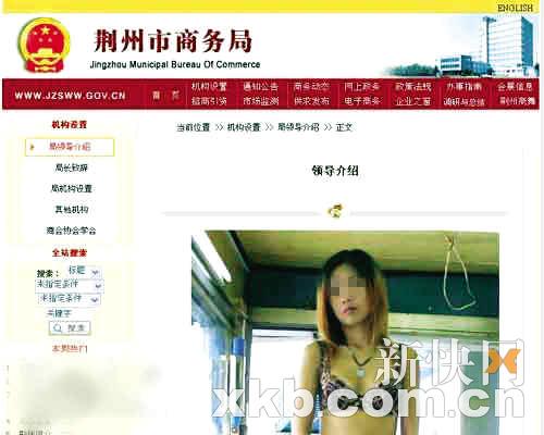 相關(guān)新聞:湖北荊州商務(wù)局網(wǎng)站被黑 領(lǐng)導(dǎo)圖片變暴露女(圖)