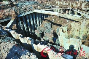 隨后,記者走近樁基大坑邊沿查看,只見大坑深約5米左右,坑內已造好12根橋墩支撐柱,而坑壁都是由鋼鋁墻負責擋土,但地陷造成鋼鋁墻的一處出現(xiàn)裂口,大量泥土注入坑內,而鋼鋁墻的其他幾面也出現(xiàn)不同程度的多處扭曲。期間,有泥土不時滑入大坑內。