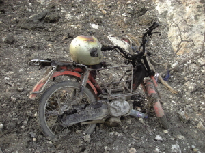 大坑附近,還有一輛被燒焦的摩托車。