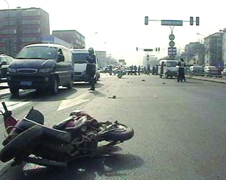 “騎車的男子已被120急救車?yán)吡!爆F(xiàn)場(chǎng)的張先生告訴記者,大約10點(diǎn)鐘,路上突然傳來急促的救護(hù)車警報(bào)聲,由遠(yuǎn)及近;還沒等他反應(yīng)過來,尖銳的剎車聲刺入耳膜,緊接著“咚”的一聲,張先生看到,一輛公交車前,一名騎電動(dòng)車的男子連人帶車向北飛了出去,“一開始,我還以為是公交車撞的呢”。