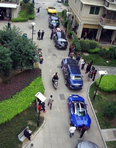 貌似并不高檔的小區(qū)內(nèi),卻出現(xiàn)了超豪華的強(qiáng)悍車隊(duì):“獵獸”開頭,后面跟著三輛“幻影”,以及“賓利”“世爵”等車(如圖)。昨日,一則《福州某集團(tuán)老總嫁女,豪車云集》的帖子在某網(wǎng)站論壇走紅,該帖描述在福州的碧水芳洲小區(qū),某集團(tuán)老總嫁女,眾多豪車云集,場(chǎng)面壯觀。眾多網(wǎng)友稱,已被這些豪車震得說不出話來了。(成都晚報(bào))