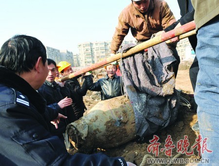 聽說挖掘機刨出個“煤氣罐”,12月13日晚11點,濟南濟安街附近一建筑工地上的張師傅跑去看熱鬧。這“煤氣罐”挺怪:兩頭尖,中間胖。有人猜測:“不會是炸彈吧!”民警趕來查看后,現(xiàn)場豎起牌子:“危險!”