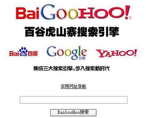 日前,一款名為“百谷虎”的搜索引擎引起了不少網(wǎng)友的關(guān)注,這個搜索引擎一眼看去和普通搜索引擎區(qū)別不大,但仔細(xì)一看,百度、谷歌、雅虎這三大搜索引擎的LOGO被整合成了“baigoohoo”,搜素框的上方還有該引擎的廣告語“集成三大搜索引擎,步入搜索新時代”。 (11月20日《信息時報》)