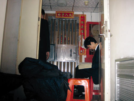 記者敲門想采訪,應(yīng)聲開門的中年男子一聽是記者,隨即關(guān)門。記者想再敲,站在角落里的該負(fù)責(zé)人則稱,“別敲了,敲也不會再開,現(xiàn)在除了他老婆、孩子來了,誰也進(jìn)不去”。