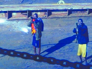海盜在“振華4號”輪甲板上射擊。新華社發(fā)