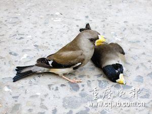 重慶一對癡情鳥兒,雄鳥死亡,雌鳥冒死守護(hù)在“愛人”身邊數(shù)小時,直到雙雙被檢疫人員帶走!八孟褚褌牡萌f念俱灰,在上百圍觀者注視下,依然守候著,仿佛與世隔絕。”雖然事隔3月,但這情景依然定格在圍觀者腦海里,揮之不去。