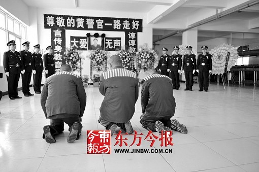 12月17日上午,(河南)省平原監(jiān)獄食堂破例召開了追悼會。在監(jiān)獄召開追悼會,這在全國監(jiān)獄系統(tǒng)還是頭一次。而這個(gè)追悼會,是應(yīng)141名服刑人員強(qiáng)烈要求召開的。12月12日,曾管教他們的51歲獄警黃中文倒在了工作崗位上,他們自愿出錢,請人買了花圈,要求送一送這名好獄警。