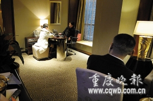 前來應(yīng)婚者在酒店房間里將資料交給親友團(tuán) 記者 冉文 攝